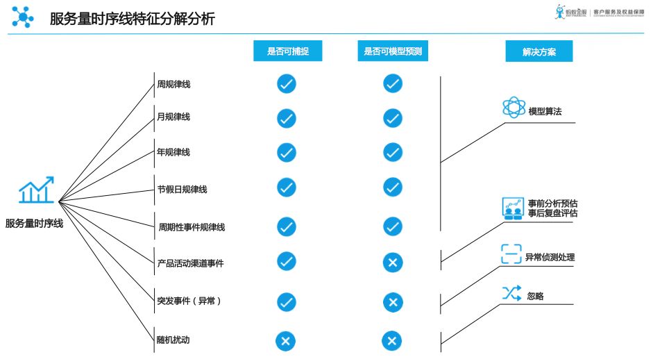 服务线的小二对接了蚂蚁所有业务线的服务量,随着业务不断拓展和复杂度的叠加,需要的咨询和审核小二人数不断增加,此时服务量如果可预测,就能基于现有资源做好排兵布阵,为业务线人员排班、人员招聘、和预算提供决策参考,在保证接通率、工单处理时效、进而提升用户体验的前提下,最大化人力资源利用,降低人力成本。