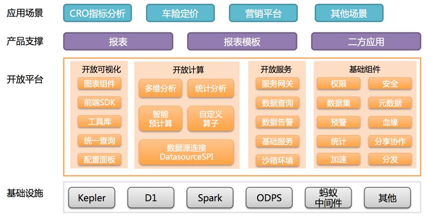 顺带也宣传下DeepInsight产品开放升级后的能力:DeepInsight不仅支持普通分析人员导入数据制作报表,而且支持业务线开发、算法同学进来,与DeepInsight可视化组件、底层数据集的计算能力接口对接,更高效完成业务的个性化解决方案。