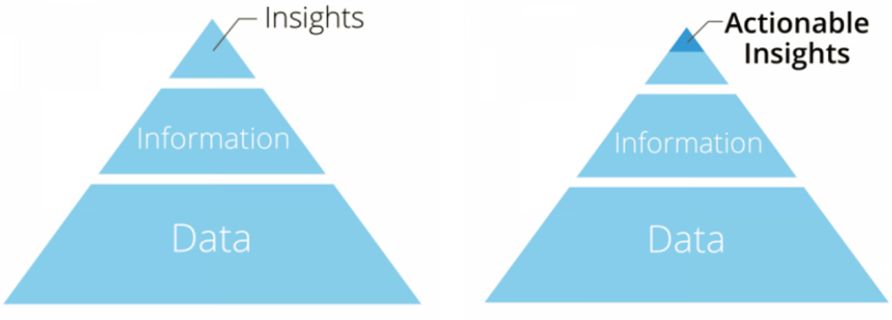 要从数据中得到价值,首先得弄清楚数据分析和洞察的区别。有很多作者讨论过这个话题,包括刚才上面贴的那篇forbes上面的文章,简言之,数据是没有经过过多的处理的原始信息,数据分析是从这些信息中发现的规律、趋势等,而数据洞察则是通过数据分析得出的价值,包括决策运营、预测机会等。