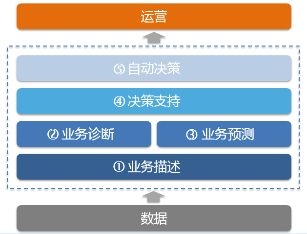 业务描述就像汽车仪表盘,实时告诉你发生了什么,并适时警报提示等。分析师要做的事情就是搭建指标体系,进行各种维度的统计分析。我们过往的大量工作就是做这个,目前市面上很多BI产品也都能够满足这个层次的数据运营需求。