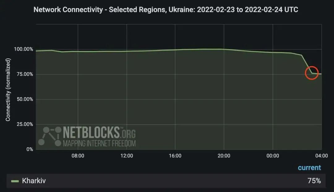 其实,俄罗斯的入侵已经让乌克兰部分地区的互联网连接中断。