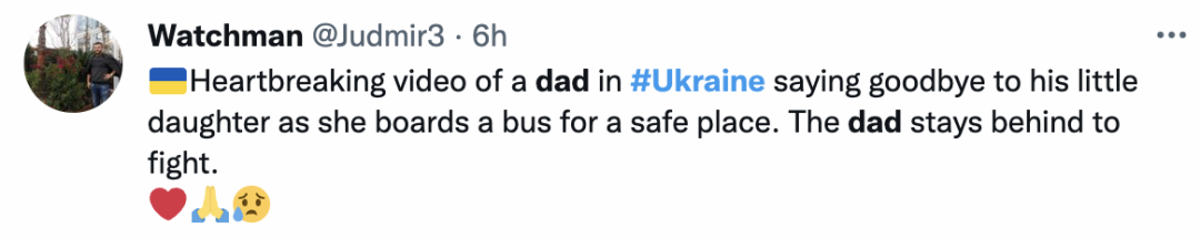 早上看到一则令人心碎的视频,视频中,乌克兰小女孩的父亲要去参军,不得不将自己的女儿和妻子送到安全的地方。