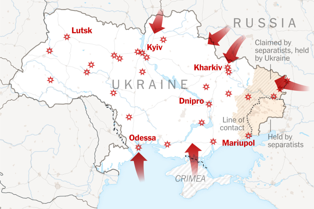 2月24日凌晨,俄罗斯向乌克兰发动了大规模的军事攻击。乌克兰几个城市被空袭后,俄军在敖德萨海岸登陆。