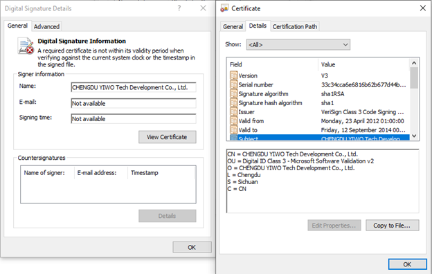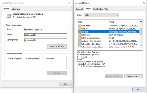 恶意擦除程序使用了「Hermetica数码有限公司产品」的代码签名证书,被网络安全业界人士称为「气密擦除器」(Hermetic即为气密性)