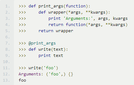 装饰器实现了在一个函数中调用其它函数或方法来增加功能性,从而修改参数或结果等,在函数定义前加上装饰器,只需一个“@”符号。