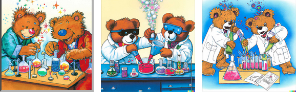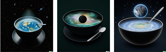 DALL·E 2可以生成如下这些同时包含三种元素的图像: