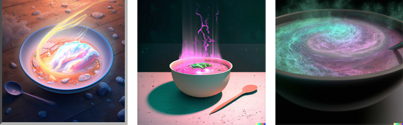 总体来说,相比 DALL·E 1.0,DALL·2 显然能 hold 住元素更丰富、色彩更饱满的图像。不再是简单的单一物品描述,而是对一个场景的整体表达,故事更完整,想象力也更丰富!