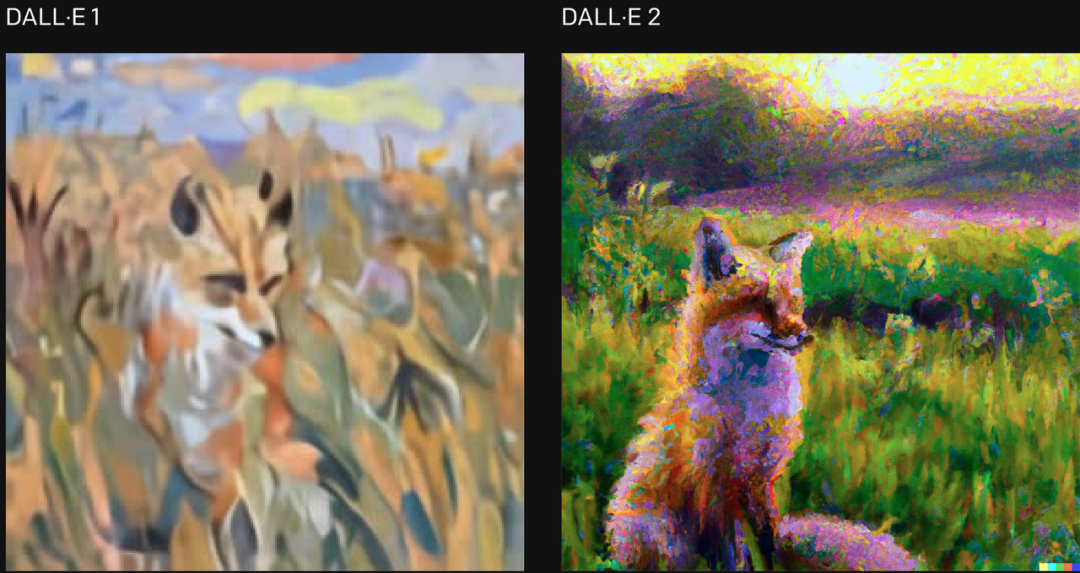 下面两张图分别是DALL·E 1 和DALL·E 2所生成图像的对比: