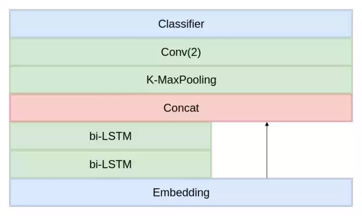 参考原论文的实现,和RNN类似,也是两层双向LSTM,但是需要和Embedding层的输出Concat(类似于resnet的shortcut直连)。