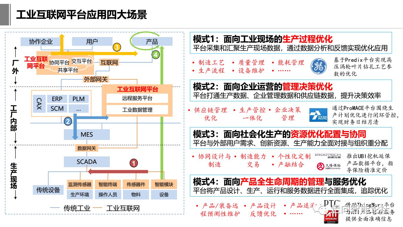 应用是平台价值的最终体现。刘默认为,基于数据驱动,工业互联网平台在以下四种应用场景中呈现差异化发展路径:面向工业现场的生产过程优化、面向企业运营的管理决策优化、面向社会化生产的资源优化配置与协同、面向产品全生命周强的管理与服务优化。