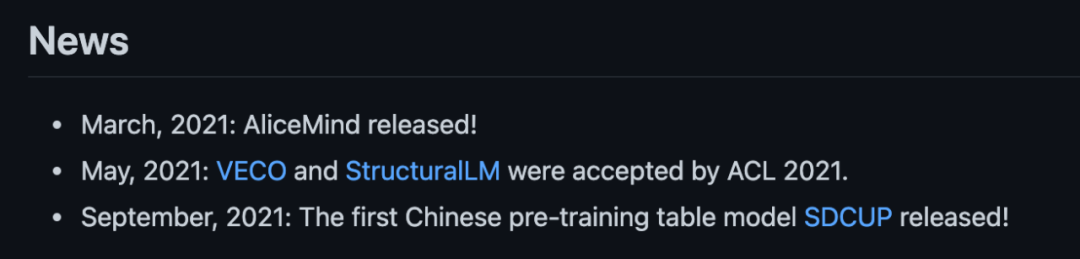12 月 2 日,达摩院深度语言模型体系 AliceMind 发布中文社区首个表格预训练模型 SDCUP,该模型在全球权威表格数据集 WikiSQL 和 SQuALL 上取得了业界最优效果,相关模型和训练代码已经开源于阿里巴巴深度语言模型体系 AliceMind 中。