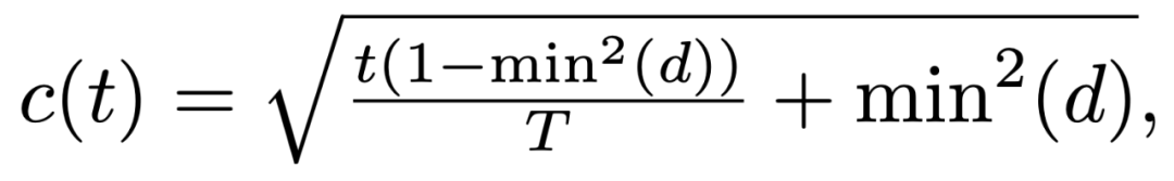 其中 d 为数据难度,t 为训练的步数,T 为最大训练步数。