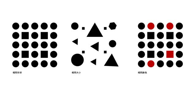 相似的形状、大小、或者颜色通常会被看做一个整体。颜色尤为明显。