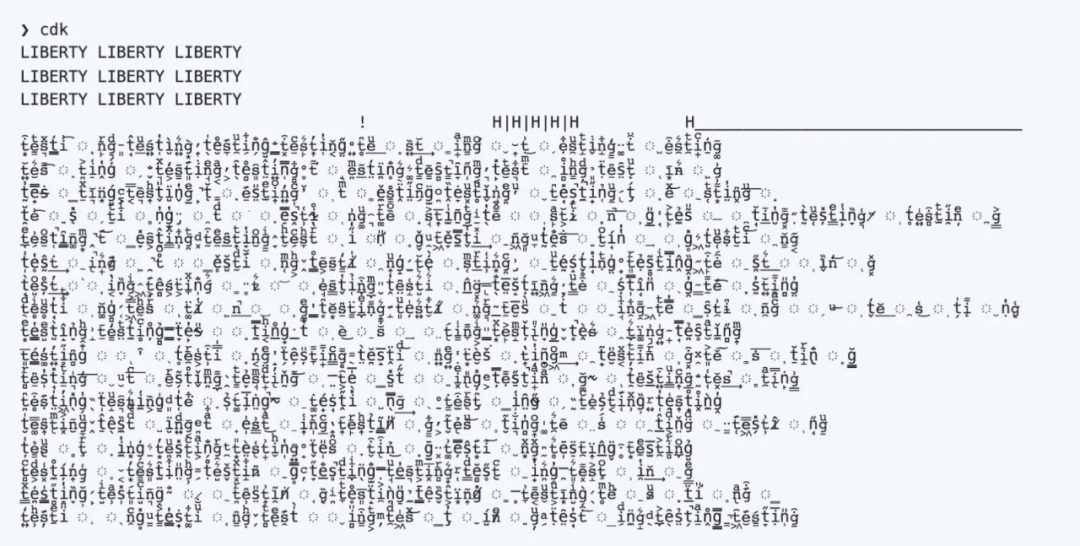随后他在 GitHub 和 npm 发布了 faker.js 6.6.6,这两个动作引发了同样的破坏性事件。破坏后的版本导致应用程序无限输出奇怪的字母和符号,从三行写着「LIBERTY LIBERTY LIBERTY」的文本开始,后面跟着一系列非 ASCII 字符: