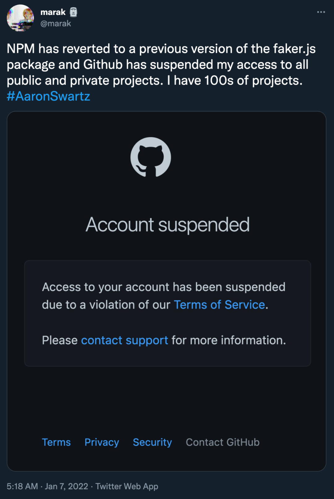 https://www.reddit.com/r/programming/comments/rz5rul/marak_creator_of_fakerjs_who_recently_deleted_the/