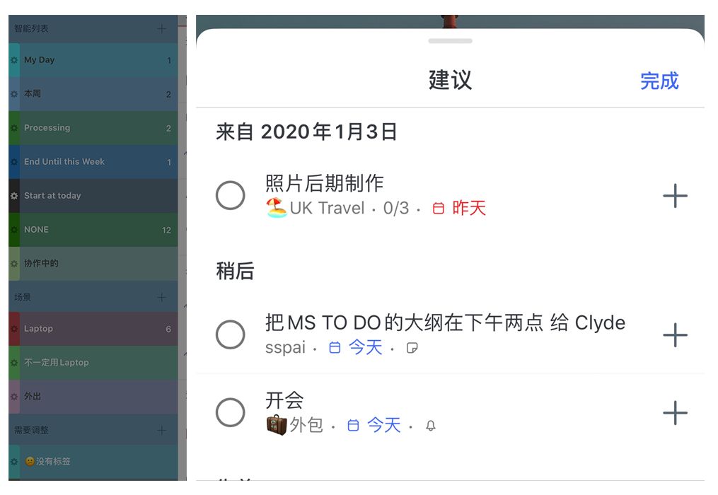 这个场景就体现出了传统 GTD 软件的滞后性,这种滞后性是因为根据条件限制导致的。但是微软待办的「我的一天」则没有这个问题,因为每天做做决定的还是我们,而不是工具,这恰恰增加了使用起来的灵活性,能够更好的适应每一天的新变化,让我们安排起任务来更加得心应手。