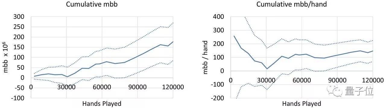 今年1月,在匹兹堡河流赌场举办了一场为期20天的Brains vs. AI比赛,Libratus在一对一、无限注的德扑人机大战中,击败四位顶级人类玩家,累计赢得176.6万美元筹码。按照德扑的术语,Libratus与人类高手的差距是147大盲注/千手(mbb/hand),也就是场均14.7个大盲注。