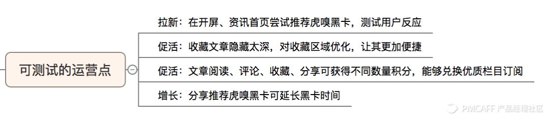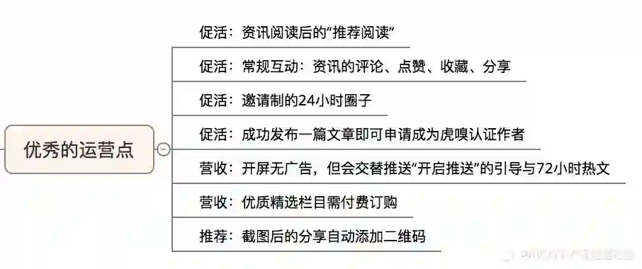 对于类似虎嗅这样的资讯阅读类APP,可以灵活的尝试一些促进用户增长的方式,通过数据分析确认方式的有效性。在此列举一些虎嗅APP可以测试的运营方式: