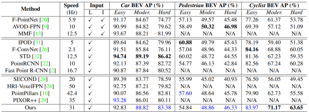 图9 HVNet 在KITTI 测试上的BEV成绩(汽车,2019年11月)