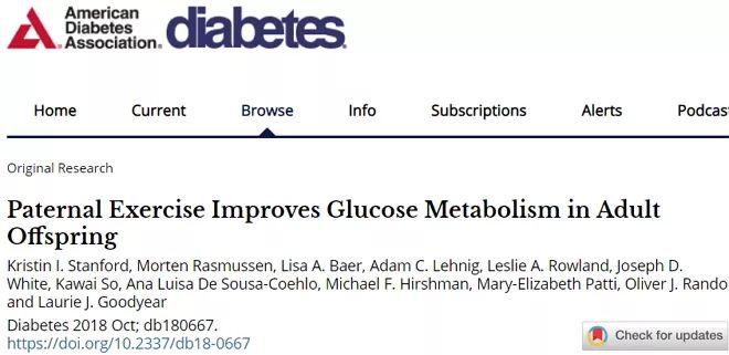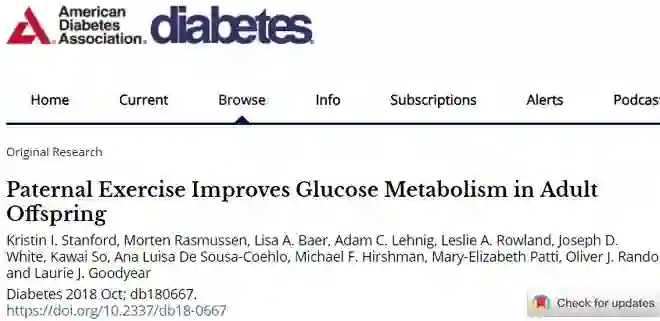 虽然这一结果是否适用于人类还不确定,但是科学家们支持“锻炼有利于后代”的观念。相关研究成果以“Paternal Exercise Improves Glucose Metabolism in Adult Offspring”为题发表在《Diabetes》期刊。