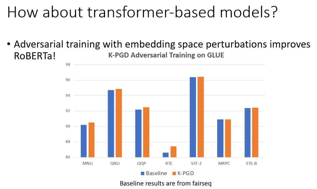 大家好,今天介绍的是暑期我在微软实习期间主要做的工作,关于自然语言模型对抗训练的问题,也就是使用更好的对抗训练的方式增强transformer-based的模型在自然语言理解领域的效果。这项工作由我和我的几位mentor,导师以及manager一起完成的。