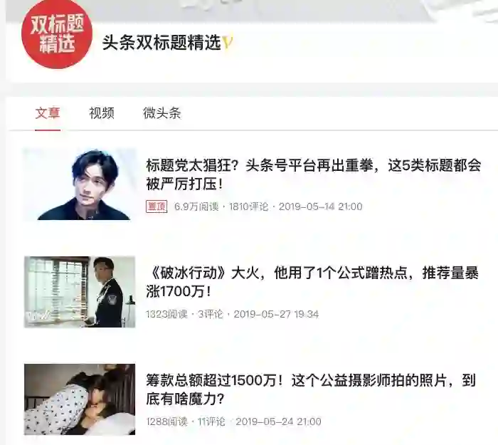 请你关注“头条双标题精选”这个头条号,他剖析了很多篇10万+、百万+文章的标题,每篇文章都值得你仔细阅读。