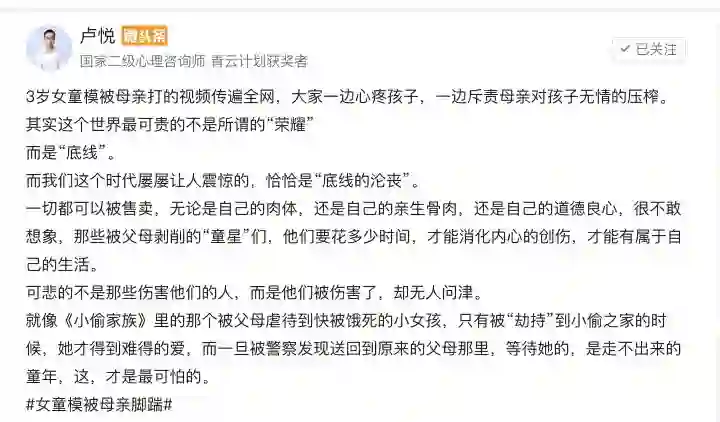 比如,下面这个微头条,记叙了一个生活中的故事,但其实里面包含着养育孩子的理念。