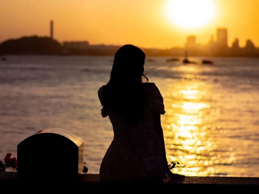 日落时的黄昏总能治愈人心,享受夕阳的少女、城市的温暖余晖...