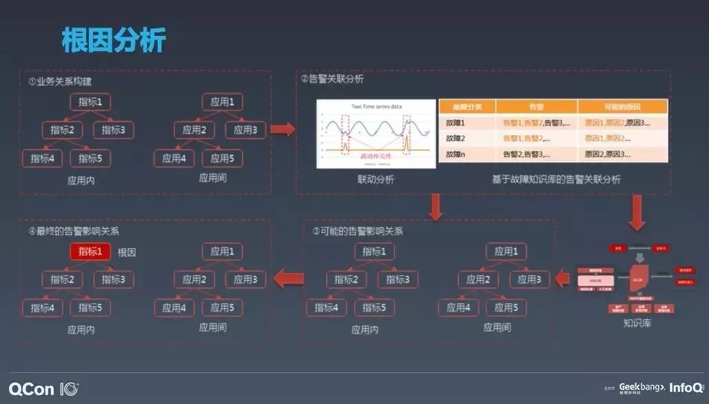 但在实际应用中,通常我们探测的拓扑关系比较复杂需要结合人工标注的方式为拓扑增加相应的权重作为拓扑依赖关系的一个修正。有了应用拓扑之间的依赖关系之后,基于大量历史告警数据进行自学习,分析每个故障时间点应用和指标之间的关联关系汇总为知识库数据,并存储到知识库系统。