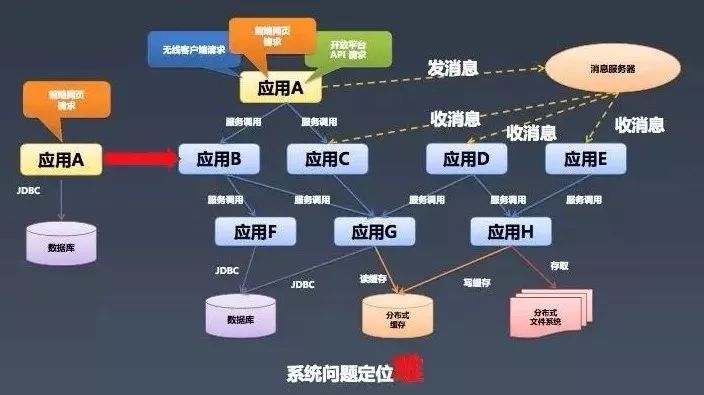 以前大家可能面对的是一个应用只操作一个数据库这种传统的应用架构,而现在几乎所有的应用都已经加入了微服务架构的行列,应用之间的调用情况就变得很复杂,在定位系统问题的时候就非常被动,这也是我们面临的一个问题。