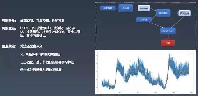 我们希望通过对大数据的分析和预测能够对容量、性能、故障进行精准预测,并提前做好自动应对措施以避免问题的产生。如果实现了这个目标,那么 AIOps 算是真正落地了。