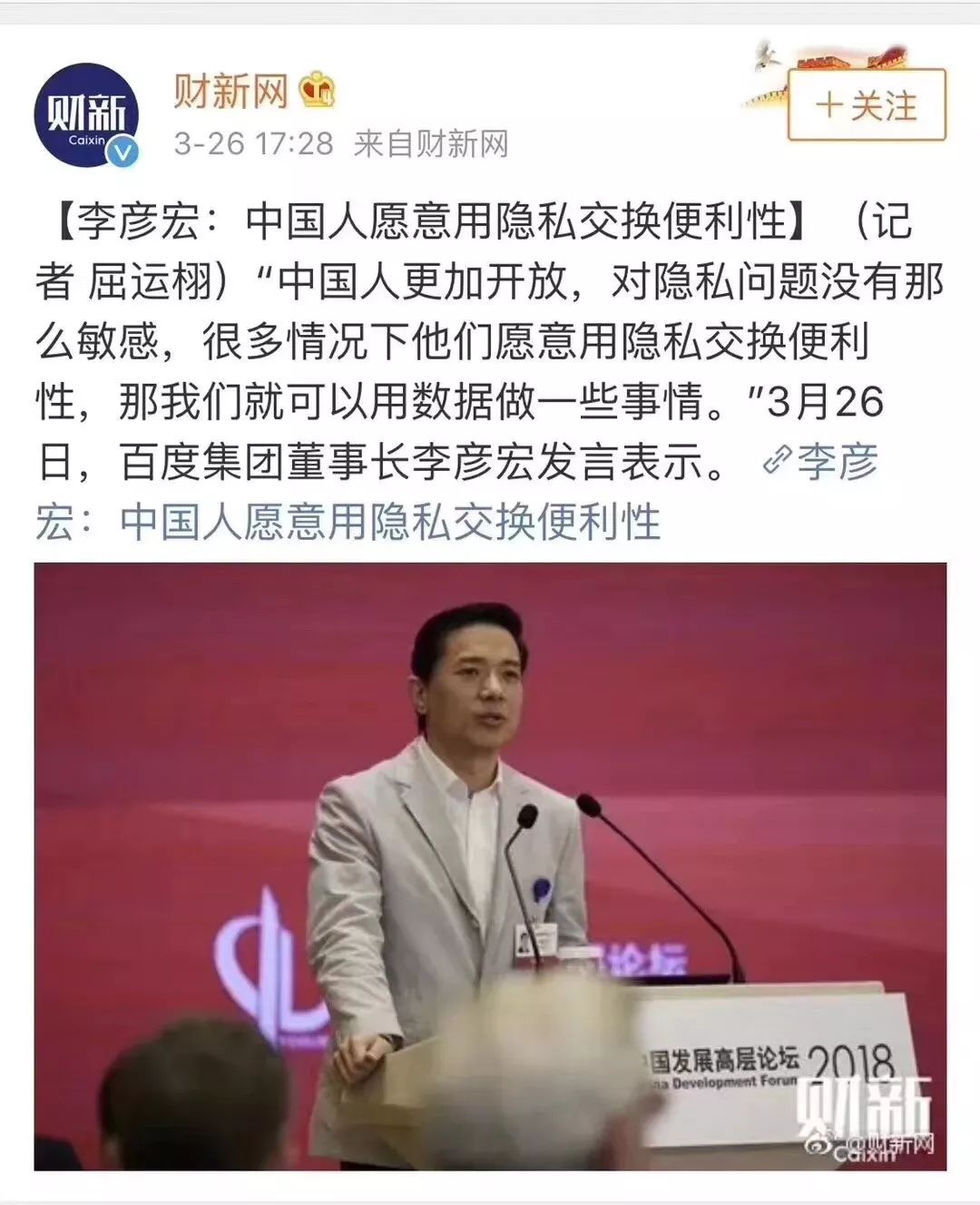 因为没有哪个中国人愿意生活在隐私被大公司侵犯的社会中,对么?李彦宏先生?
