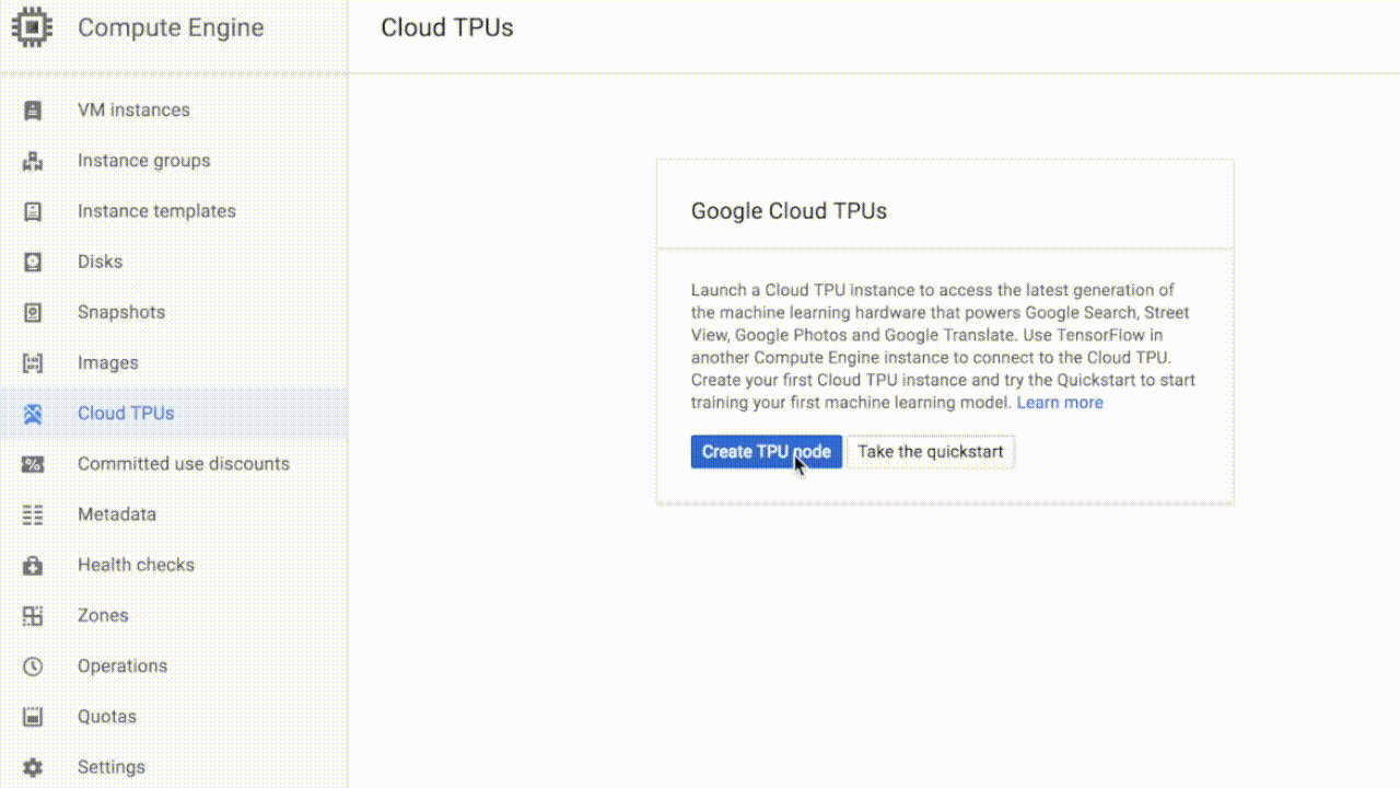 要使用beta版的Cloud TPU,需要填个表,描述一下你要用TPU干什么,向谷歌申请配额:https://services.google.com/fb/forms/cloud-tpu-beta-request/