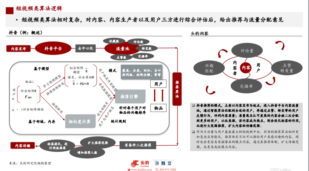 推荐算法作为桥梁快速匹配用户与内容或产品,提高整个链条的运行效率:用户角度,效率明显提高,算法通过分析精准推荐用户感兴趣的内容或产品,省去了搜索与查找得时间,快速定位到用户需要:内容产出者与商家角度,对于内容或产品对于目标用户/客户群体的精准投放得以快速实现,加快了匹配效率,使得内容与产品可以快速传播。
