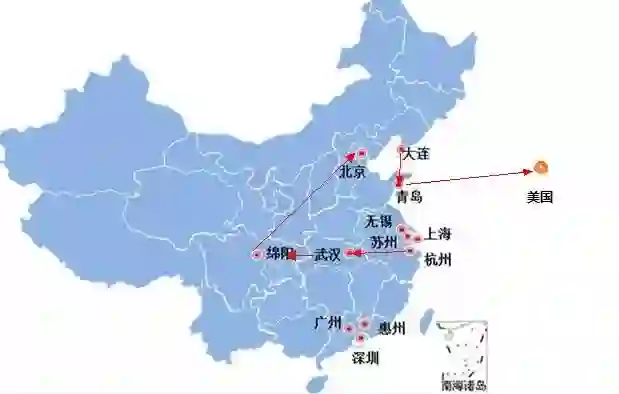 2.在不同城市根据云反射弧需求,在现实世界中为完成任务所经历的路径,例如在美国华盛顿用户通过手机提出运货需求,中国贵州运货机器人规划不同大洲的路径将货物运达到用户手中。