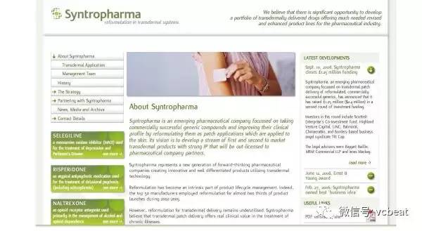 Syntropharma是一家英国新兴的制药公司,成立于2005年,专注于将通用化合物重新设计成适用于皮肤的贴片,来改善临床症状。
