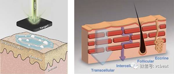 将皮肤反复(>100次)暴露在激光中,皮肤透过性将增加100倍以上,目前研究者认为,激光能更有效地促进药物转运。多项研究结果表明,此技术可使药物以很高的速率浸透生物膜的脂质双分子层结构,是一种非常吸引人的新技术。