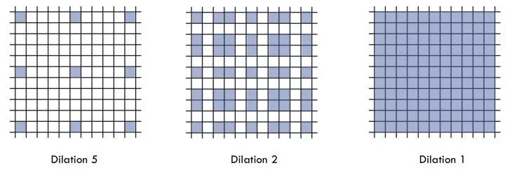 https://www.zhihu.com/question/43609045/answer/132235276),之前的pooling操作使得每个pixel预测都能看到较大感受野信息。因此图像分割FCN中有两个关键,一个是pooling减小图像尺寸增大感受野,另一个是upsampling扩大图像尺寸。在先减小再增大尺寸的过程中,肯定有一些信息损失掉了,那么能不能设计一种新的操作,不通过pooling也能有较大的感受野看到更多的信息呢?答案就是dilated conv。