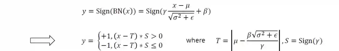 将Batch Normalization和sign函数合并起来,将浮点计算变成符号判断和数值大小比较;