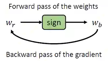 二值化神经网络的idea最初源于2016年深度学习三巨头之一Yoshua Bengio的论文《BinaryNet: Training Deep Neural Networks with Weights and Activations Constrained to +1 or -1.》,它首次提出一种方法,可以用随机梯度下降的方式训练同时使用二值化的weights和activations的神经网络。为了解决二值化weights中梯度的传递问题,作者提出在训练过程中保持一个实值(float32)的weights,然后使用信号函数sign来获得二值化的weights
