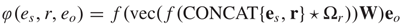 由于KG的异构性,不同类型的实体可能出现在不同的特征空间中,不适合将每个实体的所有邻居特征直接聚合起来。因此,提出实体级聚合,首先对每个基于关系路径的实体特征进行聚合,聚合方程为: