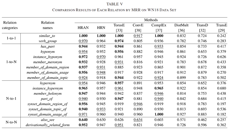 上述结果表明,所提出的HRAN能够对实体和关系生成表达性嵌入,并用于连接预测任务。通过引入关系路径的注意力机制,可以提高方法的有效性。
