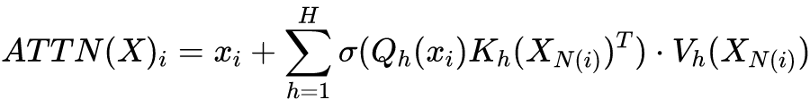 H 是头数,N(i) 是所有需要计算的 token,这里就是由三部分得来的稀疏部分,QKV 则是老伙伴了。