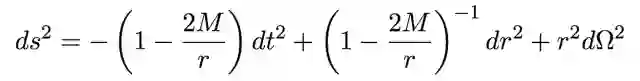 史瓦西度规是真空爱因斯坦场方程的一个解。仔细看史瓦西解就会发现当 r = 2M(r 为半径,M 为质量)时出现的奇异性,这个半径也被称为史瓦西半径。不仅如此,当半径为零时(r = 0),史瓦西的解中也具有奇异性,我们对其最好的理解是,这些奇异性标记着时空中真正的物理奇点(r = 2M的奇异性可以通过坐标变换予以消除),几何自身在奇点处失效。如果你进入一个史瓦西黑洞,你就会遇到这个奇点,但我们不知道接下来会发生什么,甚至说不确定“接下来”是否是个恰当的词。