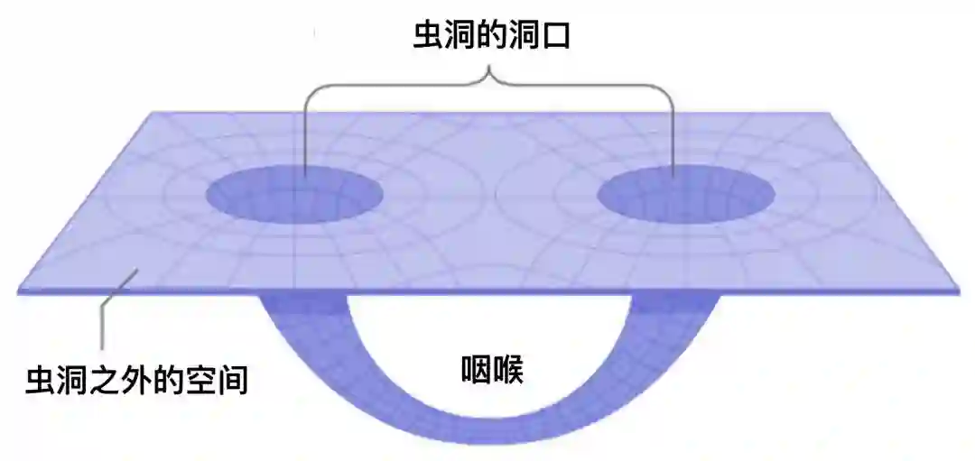 1935年,当时在普林斯顿高等研究院的爱因斯坦和内森·罗森(Nathan Rosen)对史瓦西解的重新解释,避免了这些奇点。他们设想了一个时空隧道,可以连接两个相距遥远的区域,这被称为“爱因斯坦-罗森桥”。上世纪60年代,索恩的博士导师、创造“黑洞”一词的那位富有创造力的物理学家——约翰·惠勒(John Wheeler)将这些连接称为“虫洞”。试想有一只虫子,如果它想从一端爬到另一端,最快的方法就是抄近道:直接穿过苹果内部。