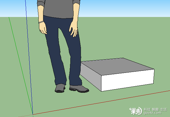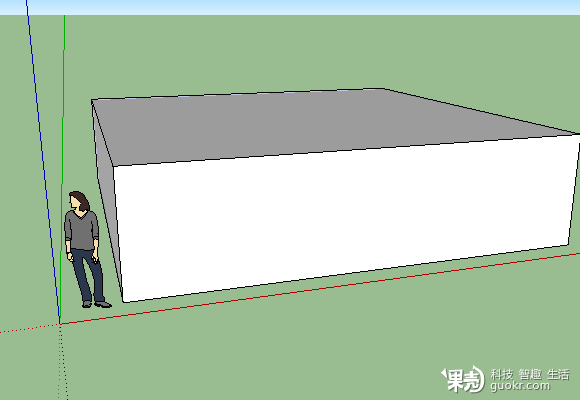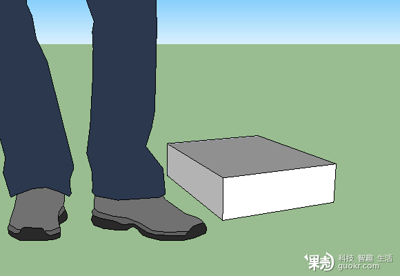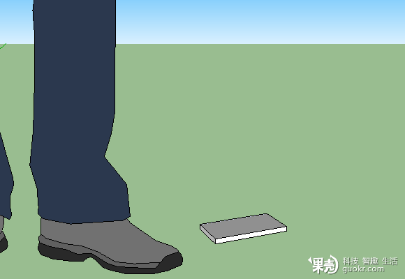 先从身边的事物入手,一万块有多少?第五套 100 元人民币长 155 毫米,宽 77 毫米。为了便于计算,我们假设一张纸币的厚度为 0.1 毫米(实际情况也大致如此)。1 万元这个数目听上去吓人,换成一叠崭新的 100 元,也不过 1 厘米左右那么厚,放在脚边很容易被忽视。我们用 Google 的 3D 绘图软件 SketchUp 直观地把这个尺寸表现了出来: