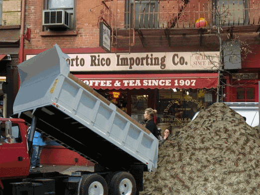 反正已经算到这了,不如我们再膨胀一些:100 亿有多少呢?这将会是 100 000 000 张纸币,可以摆成 50×100×20000 的阵型,其效果相当于长 7.75 米、宽 7.7 米、高 2 米的长方体,基本上可以装满一整套房子了。
