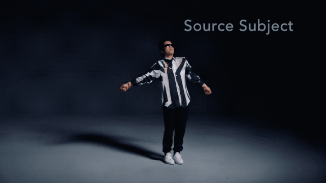 他们要实现的目的很简单——给定两个视频:一个是目标人物,我们想合成他的表演;另一个是源视频,我们想将他的动作转移到目标人物身上。