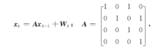 式中 W_k 是系统噪声,假定它为高斯白噪声,其协方差不随系统状态变化而改变。