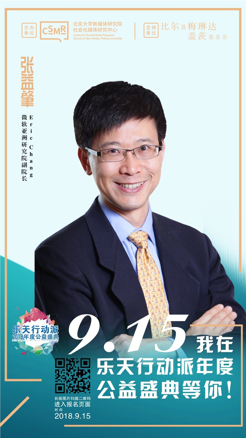 9月15日,由北京大学新媒体研究院社会化媒体研究中心主办,比尔及梅琳达·盖茨基金会支持的“乐天行动派2018年度公益盛典”将在中国电影导演中心举行。
